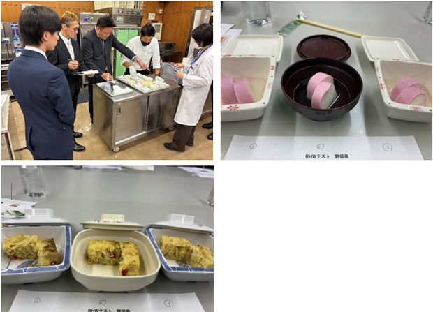 当院はクックサーブ方式を採用しています。早朝から給食業務を行う人手の確保がしづらくなっており現場の負担が大きい、という問題点があり、ニュークックチルシステムの導入目的で10月に栄養管理室長、委託責任者とリヒートウォーマーの見学へ行ってきました。私自身、入職して3年になりますが、これまで異動は無く自施設のクックサーブ方式しか経験したことがありません。ニュークックチルについては言葉を知っている程度で、実際に使用する機器や調理の流れが想像できず、まずはそれを正しく学びたいという思いから今回の見学に同行しました。試食では、再加熱が食感や見た目に与える影響を直接確認しました。一部の食材では再加熱による型崩れという課題はあるものの許容範囲内であり、何より早朝業務の負担軽減ができるという点は、現場にとって非常に大きな魅力だと感じました。しかし初期コストの高さが課題で、すぐに導入は出来ず、安定した提供体制を築くためのカギとして慎重に検討を進めています。