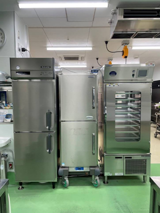 加熱調理を行うスチームコンベクション(左手前2台)、急速冷却を行うブラストチラー(右奥2台)
