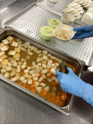 クックサーブシステムの方が美味しいお食事を提供できるのでは?と思わるかもしれません。ニュークックチルシステムでの提供に適した献立として、朝食に温かいスープと主菜をメニュー構成としたところ、患者さま、当直医師からも好評をいただいており、喫食率向上にもつながりました。